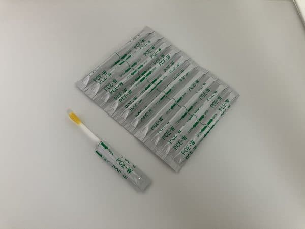 Procheck E-W färbt sich von gelb zu grün, wenn in der Probe Protein vorhanden ist. Je mehr Protein sich in der Probe befindet, desto schneller und dunkler ist der Farbumschlag.